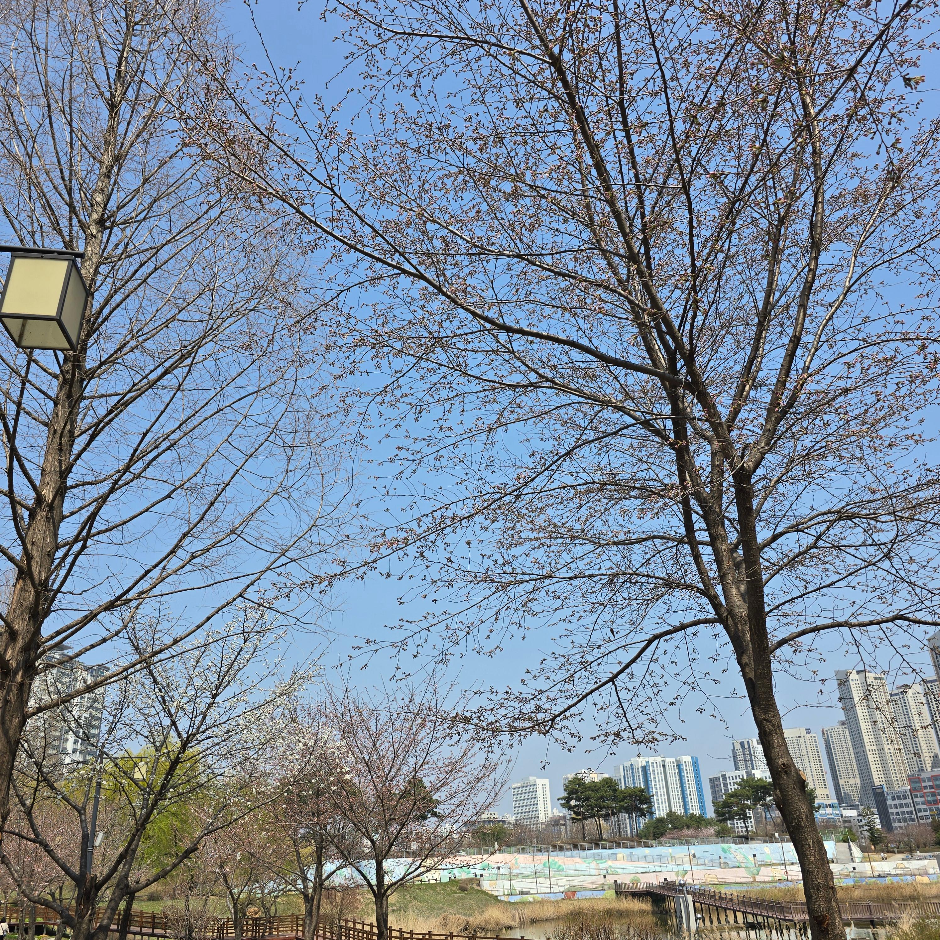 파주는 기온이 낮은 편이어서 벚꽃의 개화시기도 상대적으로 늦은 편인데요. 오늘 파주 운정공원은 이제 막 벚꽃이 피기 시작했다고 생각 하시면 됩니다.