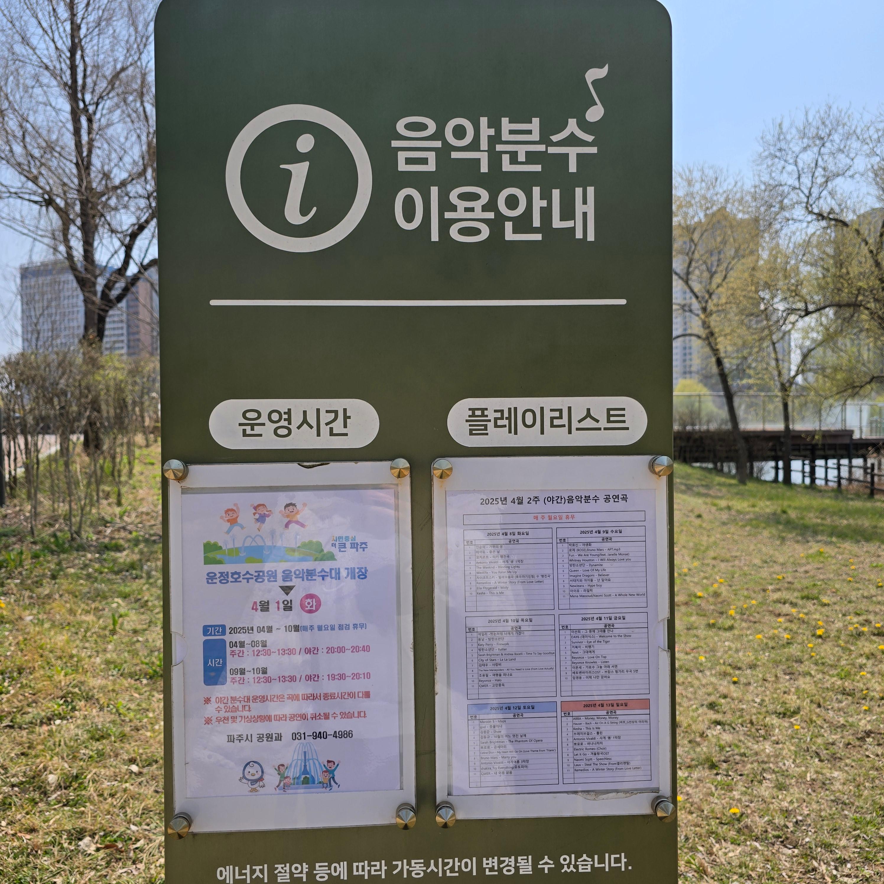 운정호수공원 음악 분수대 운영시간